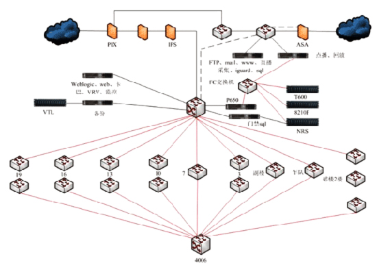 內部網絡包含了悉數大樓的網絡構造和各種運用,詳細的運用有:新聞稿流通體系、物資辦理體系、磁帶辦理體系、門禁花費體系、成本核算體系、考勤體系、內部網站、DNS解析效勞、VRV桌面辦理體系、卡巴斯基網絡版殺毒軟件、熊貓硬件防毒墻、上彀行動辦理、網強網管體系、IPS侵略檢查體系、機房監控體系、VTL虛擬帶庫備份體系、NRS疾速康復體系。