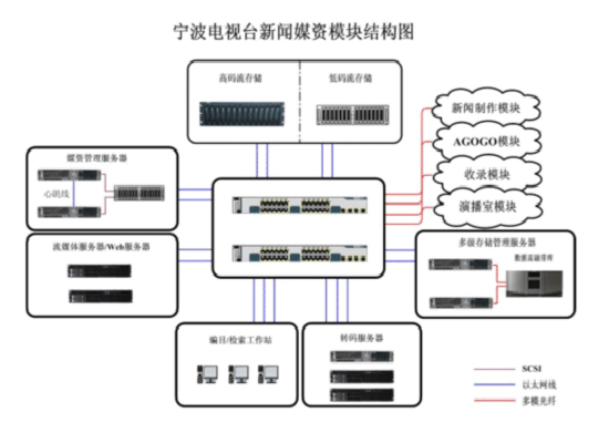 寧波電視臺新聞網絡體系是一個將核算機網絡文稿,非編制造,媒體財物辦理等體系有用聯系在一起的數字化網絡體系。體系中運用了核算機,網絡,存儲等技能。體系各環節彼此相關,形成了新聞采編全體。新聞制播網按功用模塊能夠劃分為新聞制造模塊、媒資域模塊、演播室模塊、錄入模塊等其構造圖如下: