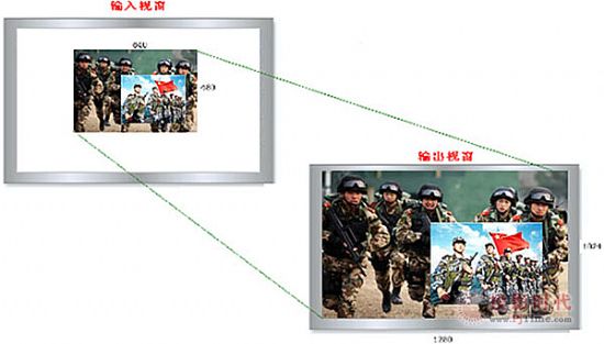 窗口縮放首要是把輸入視窗進行等比例擴大,如下圖。輸入信號的分辨率為640×480,無法滿屏顯現,輸入時信號的分辨率已為1280×1024,已占滿全部窗口。