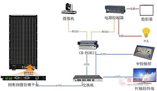 高檔操控卡的網絡接口能夠經過交換機和CR-PGMIII操控主機級聯對接,然后完結對會場一切體系的會集操控,在PC客戶端能夠定制個性化的觸控界面然后完結一臺pc,一套終端軟件觸控全部指揮廳一切體系。