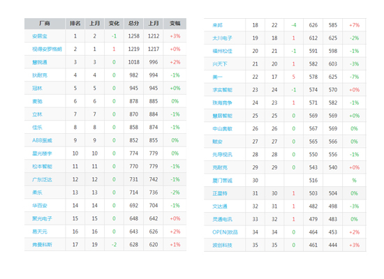 值得一提的是,來邦是本月樓宇對講職業(yè)上漲最快的公司,依據(jù)千家網(wǎng)品牌指數(shù)分析得出,來邦在本月職業(yè)中投入很多的平面媒體廣告及雜志文章的宣揚;使得其在7月份的品牌排行取得較大幅度的提高。