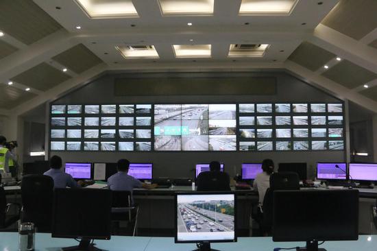機房墻面上有許多大大小小的屏幕,明晰的顯現了各路段的路況,交警同志也一向都在屏幕前辛苦的監控著。小編跟從交警同志一同監控屏幕,并沒有發現有車輛始入應急車道的表象。